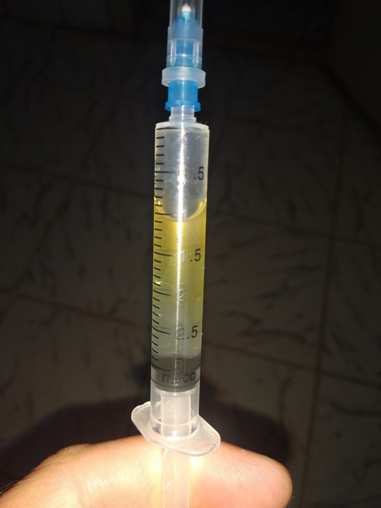 Масло чистое, ровной консистенции и достаточно жидкое. Закатка, наклейка и резиновые флипы хорошего качества, в этом исполнение мне очень понравилось. Так же заметным плюсом для меня было отсутствие сустаноновой лихорадки, прием протекал ровно, без гормональных всплесков.