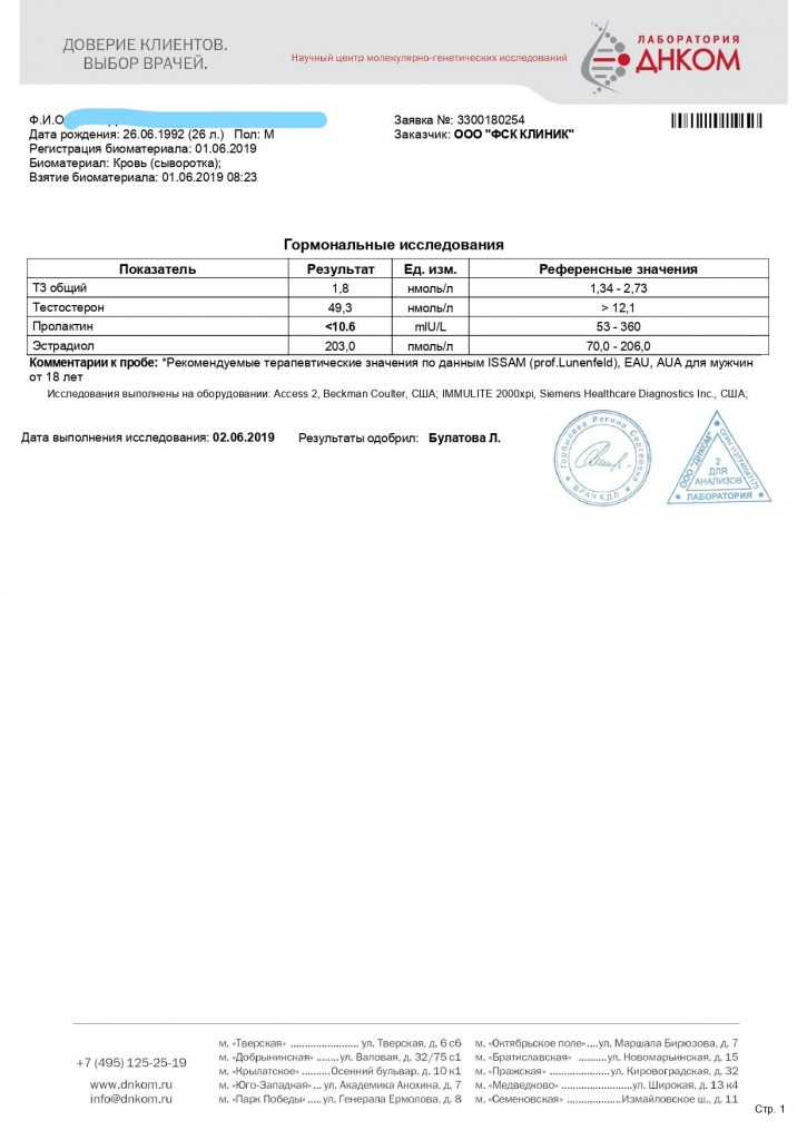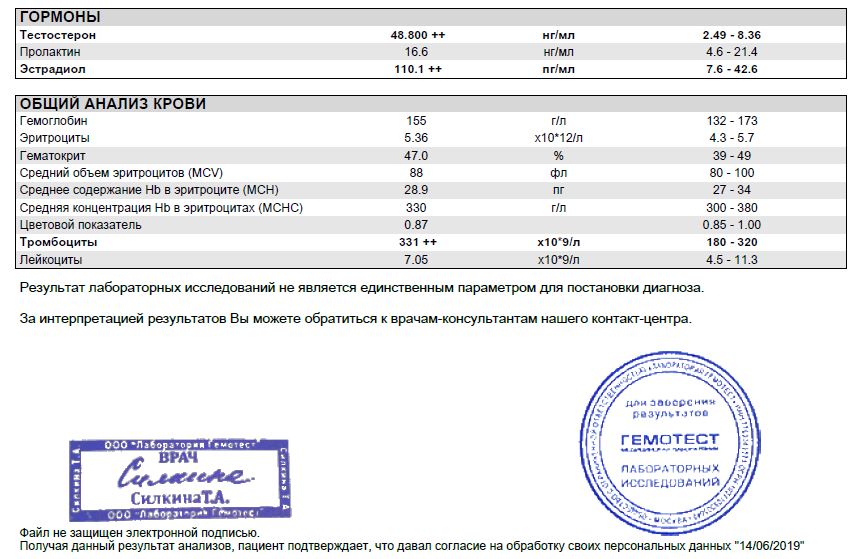 Всем доброго времени суток. Пришёл анализ на Трен А от БД. Как по мне для 75 мг через день за четыре инъекции отличный результат. Драйв и агрессию только начал ощущать.