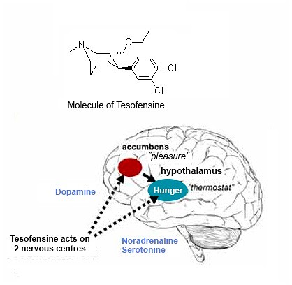 Тезофензин действует на мозг, вызывая чувство быстрого насыщения во время еды, тем самым уменьшая аппетит. Таким образом, Вы будете есть меньше и, следовательно, Вы будете потреблять меньше калорий, что приведет к потере веса. Результаты клинических испытаний Тезофензина дали убедительные результаты. Было показано, что Тезофензин был более эффективен, чем любые другие таблетки для похудения. Пациенты, представленные в клинических испытаниях, потеряли в среднем 12,8 кг, или 10% от их веса тела в течение 3 месяцев. Результаты испытаний, опубликованные в The Lancet показывают, что Тезофензин является наиболее эффективной молекулой из известных на сегодняшний день.Тезофензин является одновременно регулятором и модератором аппетита, и “горелкой” калорий.